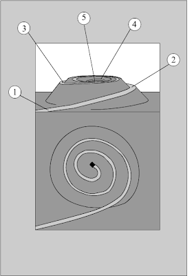 Тропинка приближается к центру парка по спирали - сначала поднимаясь на холм, затем спускается в выемку.